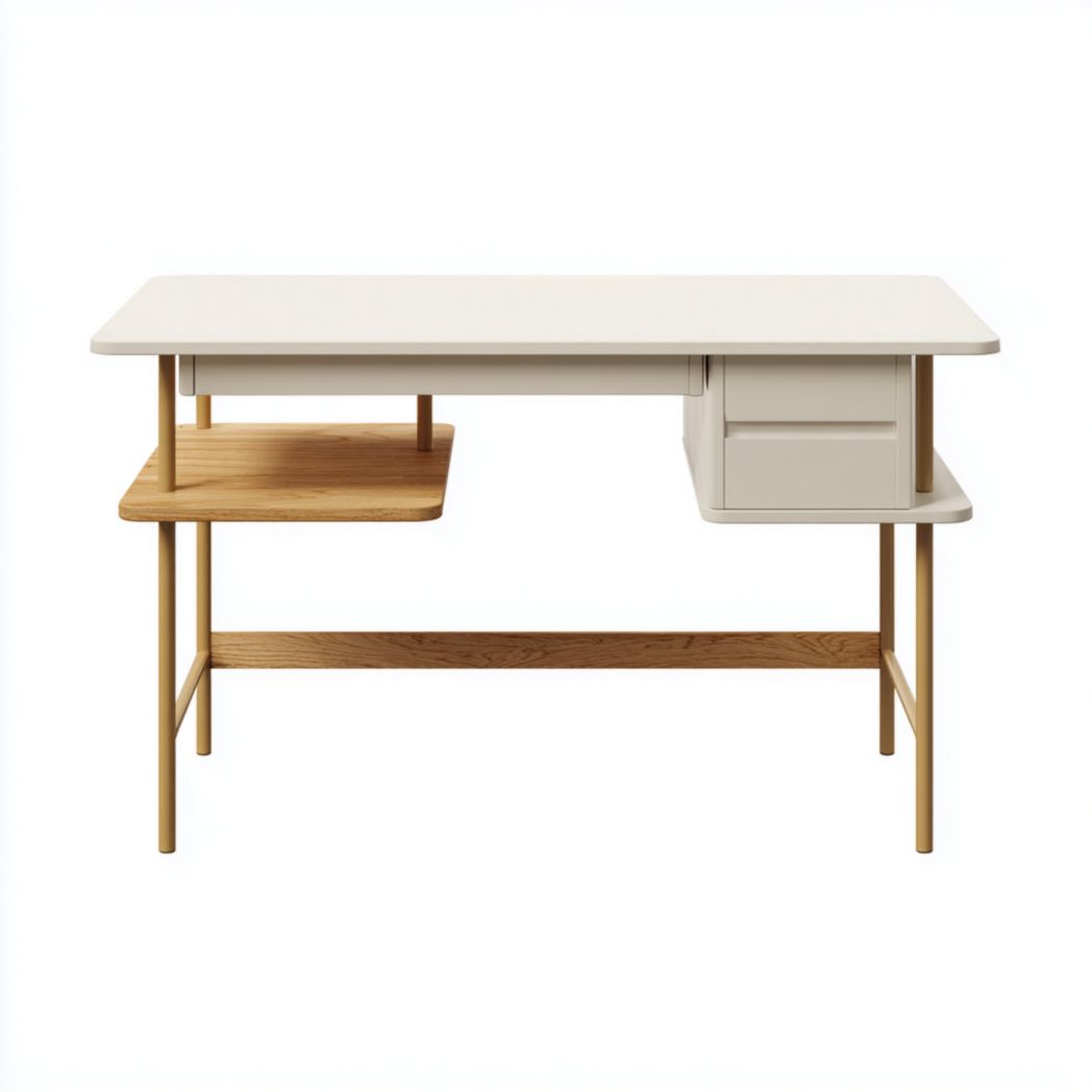 Bureau en bois avec deux tiroirs et pieds métalliques