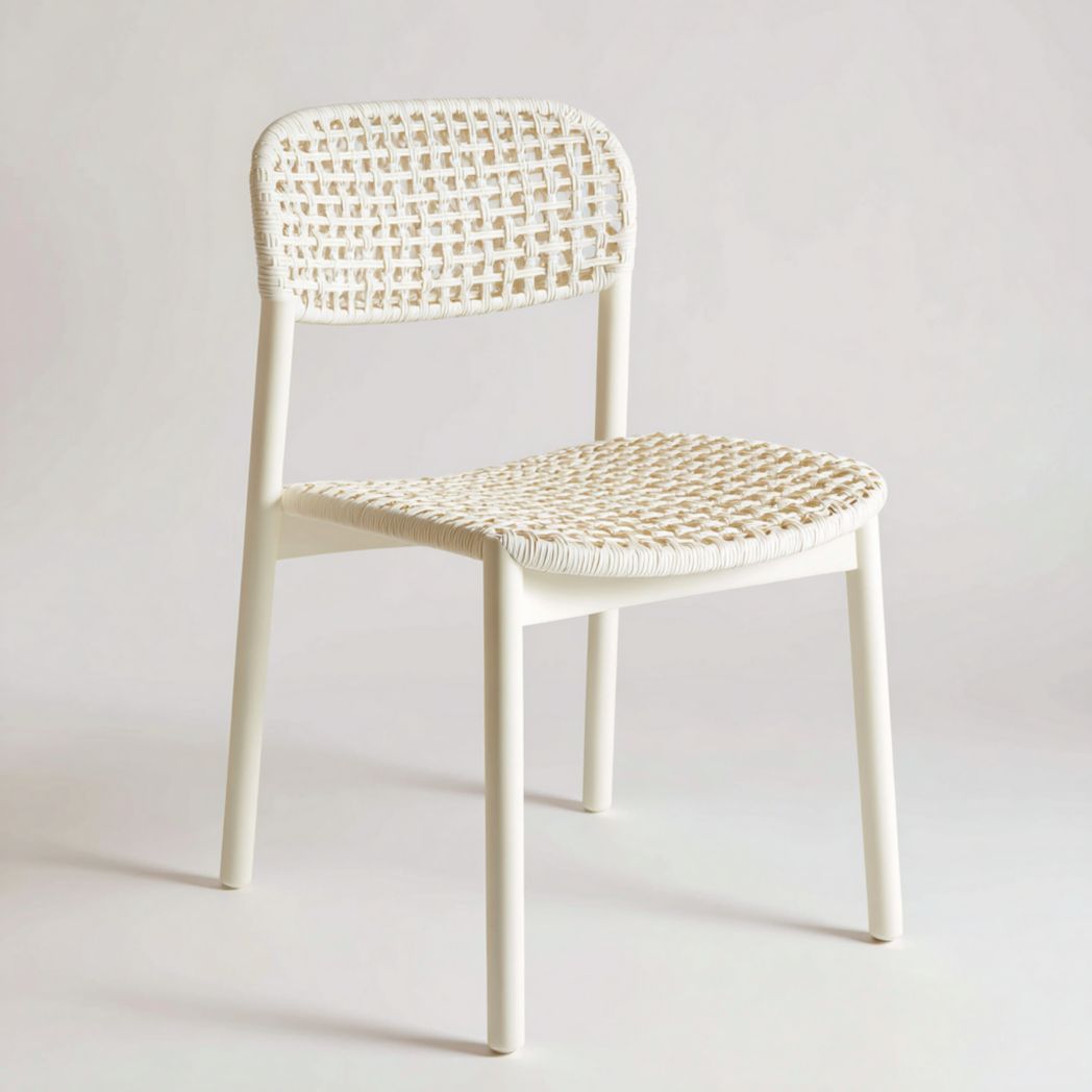 Chaise de jardin en corde tissée beige et blanche