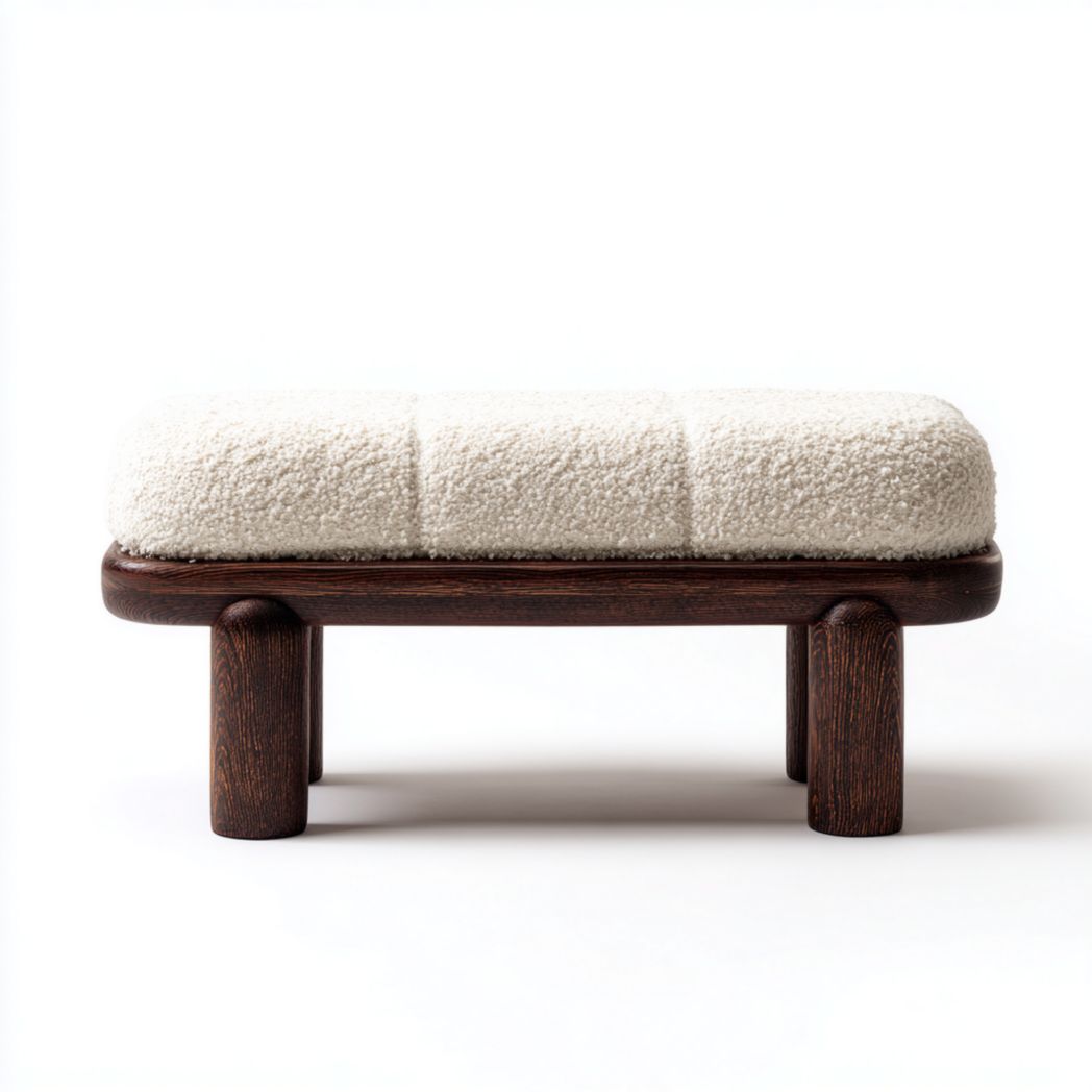Ce banc au design épuré et contemporain est recouvert d'un tissu bouclé doux pour un confort optimal. Sa base en bois massif, au fini foncé, lui confère une stabilité solide et une touche chaleureuse. Parfait pour l'entrée, le salon ou même la chambre, il s'intègre facilement dans des décors modernes et minimalistes.