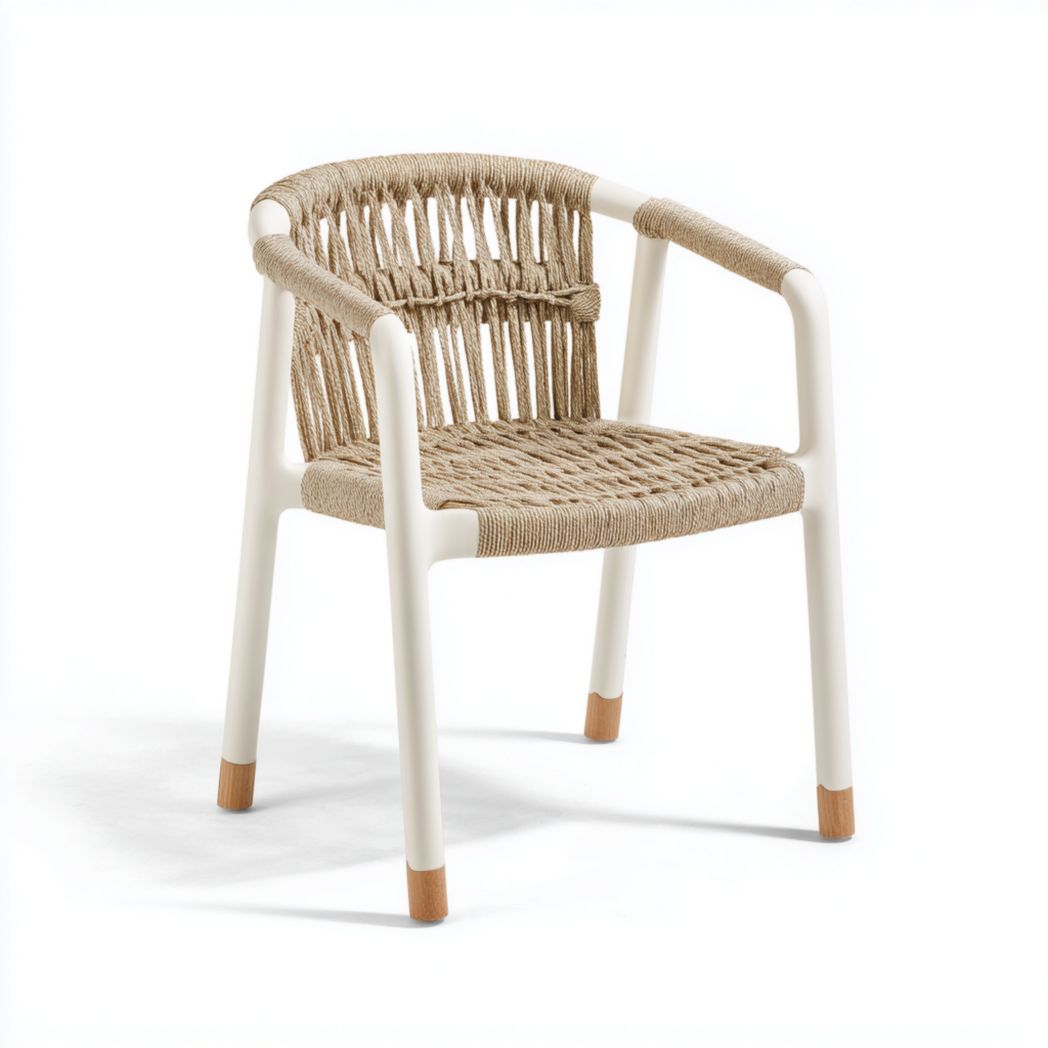 Cette chaise de jardin moderne associe des matériaux de qualité, avec une structure en plastique blanc et un siège en corde tissée beige. Parfaite pour l'extérieur, elle offre confort et style. Son design épuré et contemporain s'intègre facilement dans n'importe quel espace extérieur.
